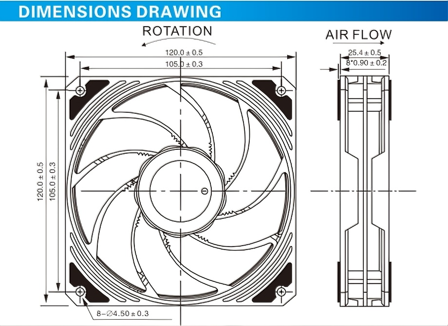 | SAA1225×24HD | 120*120*25 | Q or B | 24 | 3000 | 109.49 | 5.45 | 0.23 | 5.52 | 38.7 | 175 |